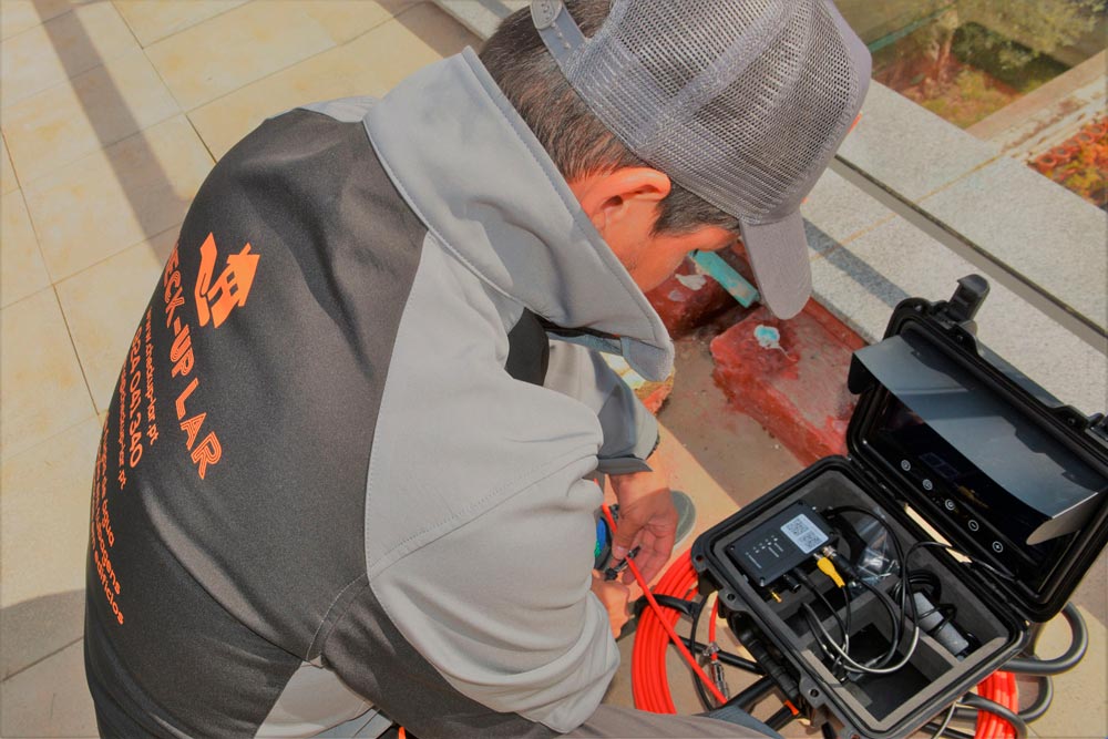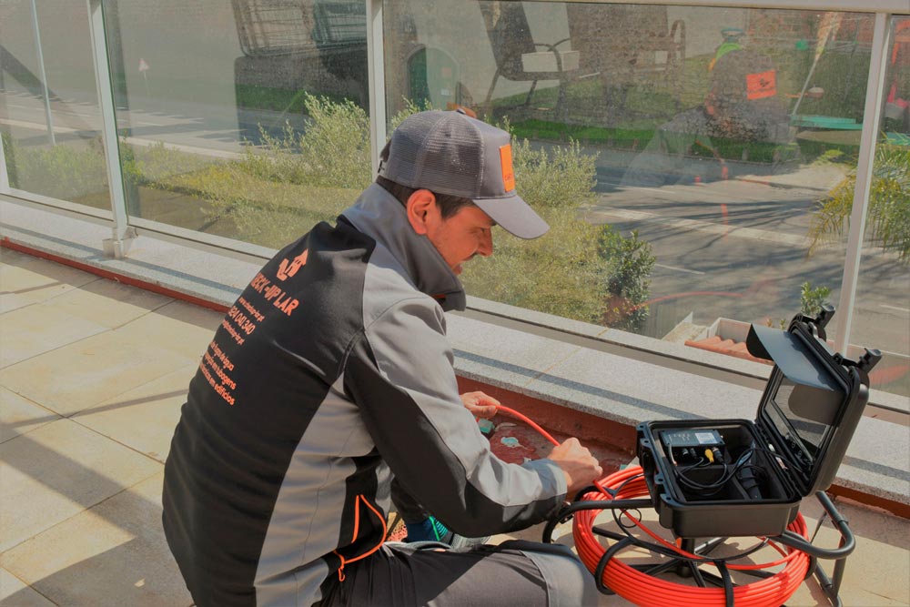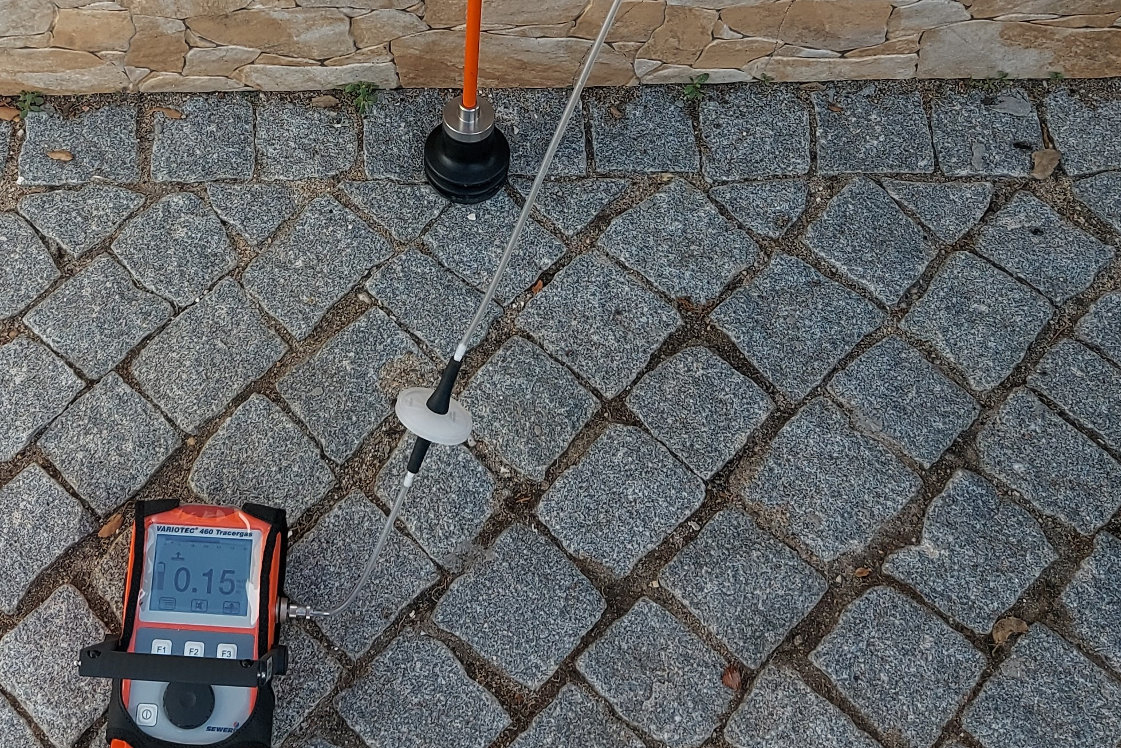 Introduzindo uma mistura dos gases azoto e hidrogénio na canalização, o gás traçador (hidrogénio) escapará por qualquer fuga existente, sendo detectado pelos nossos operadores através de um sensor especializado.